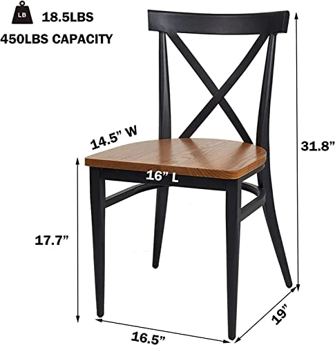- Sturdy Dining Chairs: Made of thick natural wooden seat and strong iron legs and back, super heavy duty and built to be long-lasting. No-slip cover on the leg feet for better safety and stablity; holds up to 450lbs.