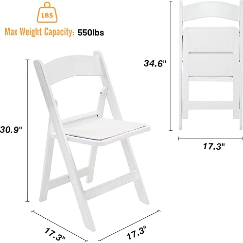 - 【Dimension】-Folding Chair: 17.3‘’D × 17.3‘’W × 30.9’’H Folded Size: 17.3’’D × 2.25‘’W × 34.6’’H Net Weight: 10.8lbs/Pack Max Weight Capacity: 550lbs