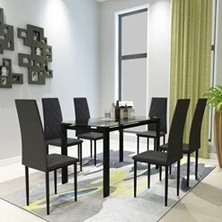 - UPGRADED UPHOLSTERED CUSHION: Kitchen dining table set includes 4/6 upholstered dining chairs, using contemporary faux leather for cover. In addition,The seat cushion of the high-back chair is filled with sponge, so as to keep your body supported as you lean back for added comfort.