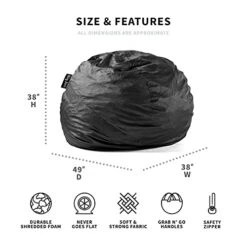 Big Joe Fuf Large Foam Filled Bean Bag Chair With Removable Cover, Black Lenox, 4ft Big