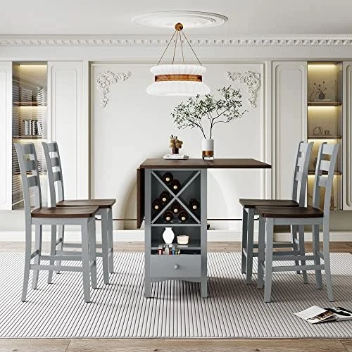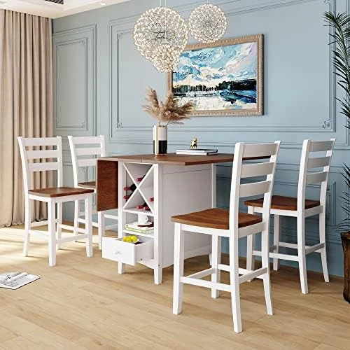 - SPACE SAVING DINNING TABLE SET: With its open design and compact size, this bar dining set perfects for small apartments or studio. Counter stools can be tucked under the table when you finish your meal, which helps save space and keeps your home well organized.Besides, the dining table comes with three-tiered shelf that allows you to organize and display items within reach. NO more space will be wasted with this space-saving dining table set.