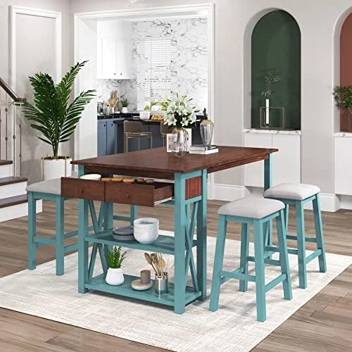 - DURABLE CONSTRUCTION & SOFT CUSHIONS: Our dining table chair set made of high-quality solid rubber wood and acacia veneer, this bar table set is designed to last for years. Two included stools are padded for comfort. The stools are not only stronger and stable but more comfortable while can also hold 250lbs max capacity.