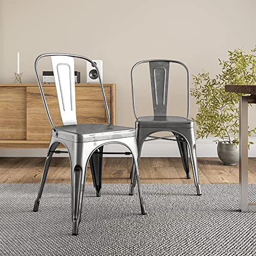 - 【ERGONOMIC STACKABLE CHAIRS】 The metal stackable chair is designed with an ergonomic backrest that provides you with a relaxing feel and comfortable experience. 16.6″ high backrest reduces back pressure and supports the body, allowing quick and easy removing of the backrest to be barstools. Lightweight and stackable metal dining chairs for easy portability, perfect dining room chairs for limited spaces.