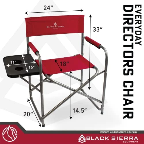 - LASTING SUPPORT: Heavy duty powder coated steel frame supports 300 lbs. This director chair measures 33”H x 24”W x 20”D when open.
