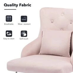 UDAX Velvet Dining Chair, Upholstered Vanity Chair With Tufted Back And Metal Legs, Mistyrose Pink