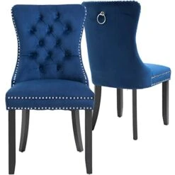 Set Of 2 Modern Upholstered Fabric Dining Chair With Nailhead Trim And Button Tufted Back (Blue)