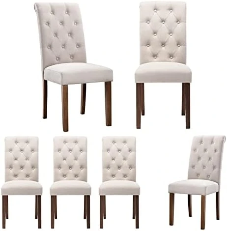 - 🌲Style Your Dining Area– Featuring a high back, a beige, or grey fabric cover and fancy, deep tufted buttons on the back, these padded kitchen chairs brings a touch of country charm, taking your dining area to the next level.
