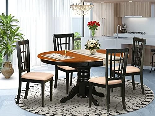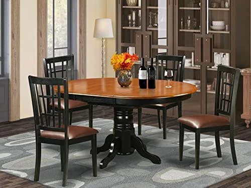 - Our 5-piece dining set includes 4 kitchen chairs and 1 pedestal table. The design of dining chairs will enhance the beauty of any dining area. Our dining chairs and Beautiful kitchen table will match any room décor due to its classic design.