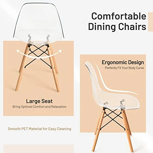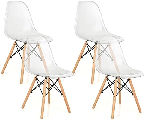 Giantex Set Of 4 Dining Chairs, Clear Dining Side Chairs W/Beech Wood Legs, Shell Designer Pre Assembled Modern Mid Century Transparent Dining DSW Chairs, Plastic Kitchen Chair