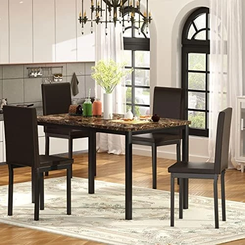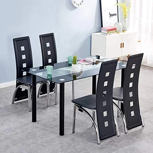- 【4 PU DINING CHAIRS】: 4 black leather dining chairs seat with the solid metal frame offers durability that you can enjoy for many years. High back and armless chairs provide unexpected comfort for you and your families. Whether you are looking for extra seating in your breakfast nook or dining room or use it as an entertaining station, this 5-piece set is the best choice