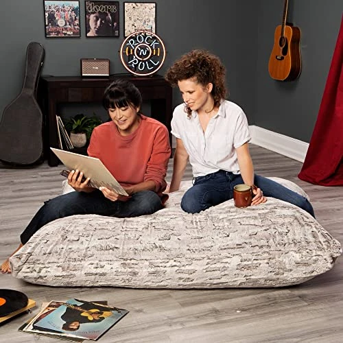 - Extra large 5. 5 ft. multifunctional Bean bag chair or floor pillow with premium faux-fur cover (100% animal free fibers)