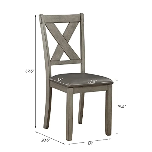 - Bench and cross-back chair feature gray faux leather upholstered seat top