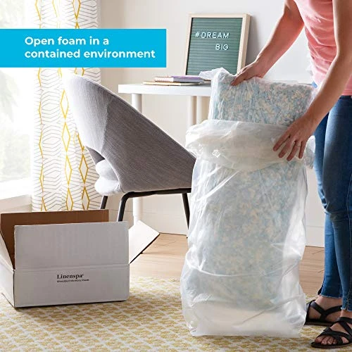 - COMPRESSED FOR CONVENIENT SHIPPING: Memory foam is compressed, vacuum-packed, and shipped right to your door for convenience. To avoid a mess, be sure to open in a contained environment like a large garbage bag or box