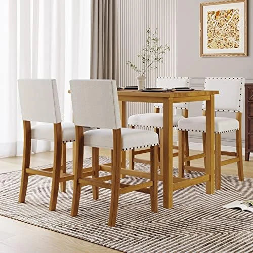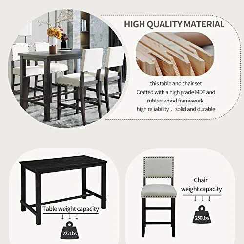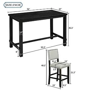 - 【Kitchen Table Set for Small Place】:This 5 piece dinnet set with compact size ideal for small place,Table Dimensions: 52″Lx27″Wx36.3″H. Chair Dimensions: 18″Lx19″Wx40.5″H.Counter height design make it both comfortable for sitting or standing by table.