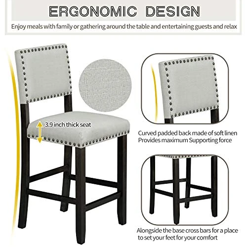- 【Elegant Appearance and Ergonomic Design】:4 cushioned chairs with nail head trim in an eye-catching and contemporary black and beige color scheme.cushioned curved backrests upholstered in velvety soft linen-like material offering the utmost support, alongside the base cross bars for a place to set your feet for your comfort.