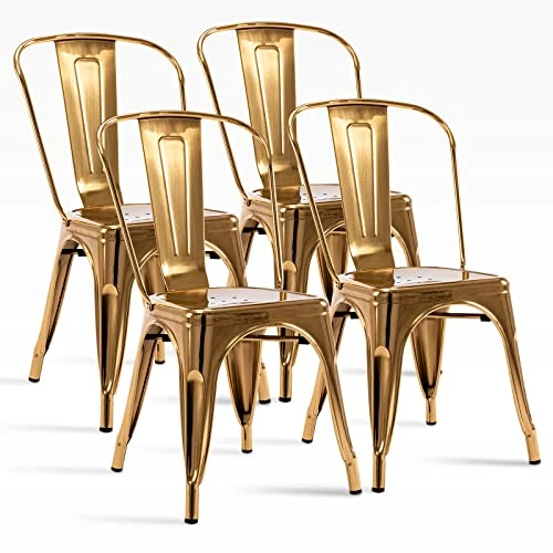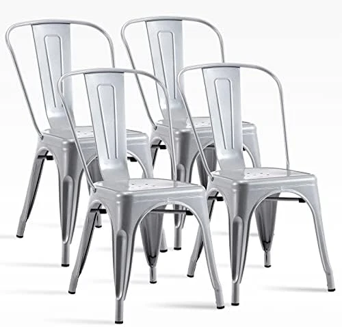 - {LIGHTWIGHT AND SPACE SAVING}:Easy to move around and you can stack the metal chair when you are not using them or push the dining chair under the table to save space.