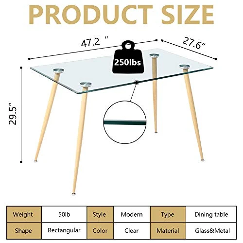 - Sturdy and Durable Kitchen Table : The glass dining table has an 8 mm thick tempered clear glass top,resistance to scratches,easy to clean.