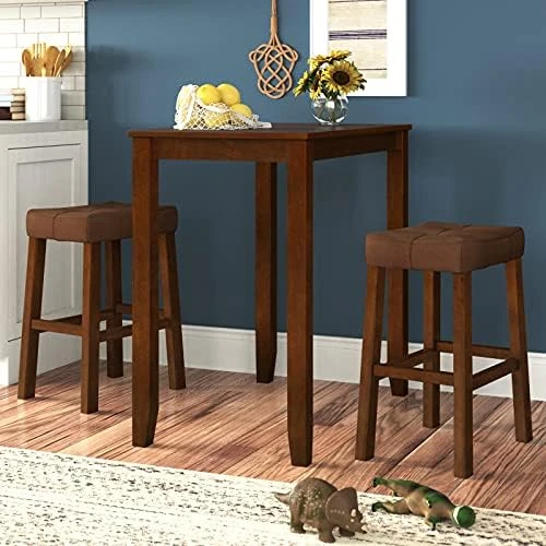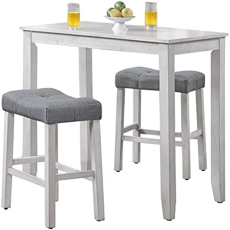 - 👍【Small Space】Our 3-piece dining table set which take a compact design, the counter-height table with 2 stools that can be neatly stored underneath for space-saving convenience