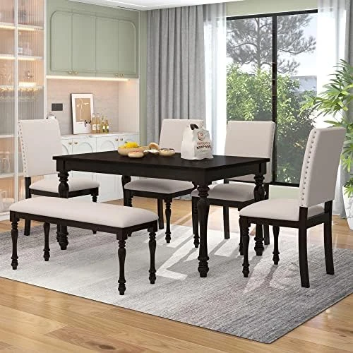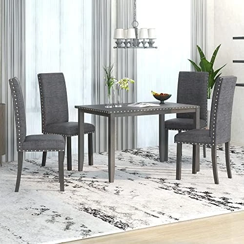 - ☛Family Friendly – Both the seat cushion and the back of this wooden dining set are padded in highly elastic sponge and tightly woven burlap upholstery. 2.4″ thicken cushion for upgraded comfort. Each chair comes complete with wide seating, the seats are formulated for easy spot cleaning with the wipe of a damp cloth.