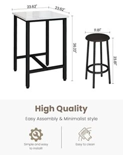 DKLGG 3-Pieces Bar Table And Chairs Set, Kitchen Dining Bar Height Table With 2 Bar Stools, Modern Bistro Pub Table Breakfast Square Bar Table Small Space For Kitchen, Living Room, Party Room, White