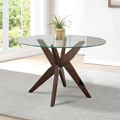 Steve Silver Amalie 48″ Round Glass Top Walnut Base Dining Table