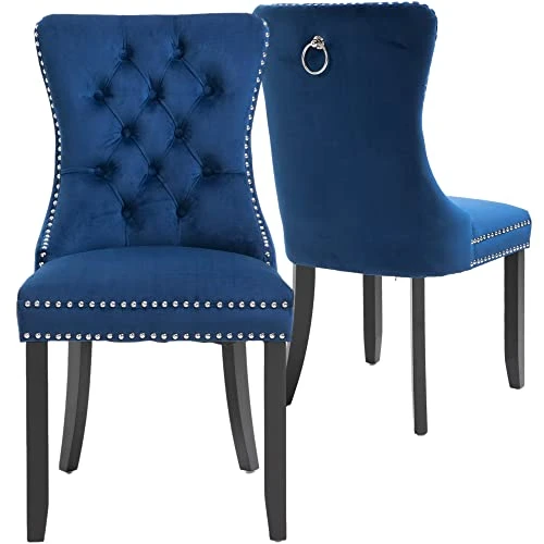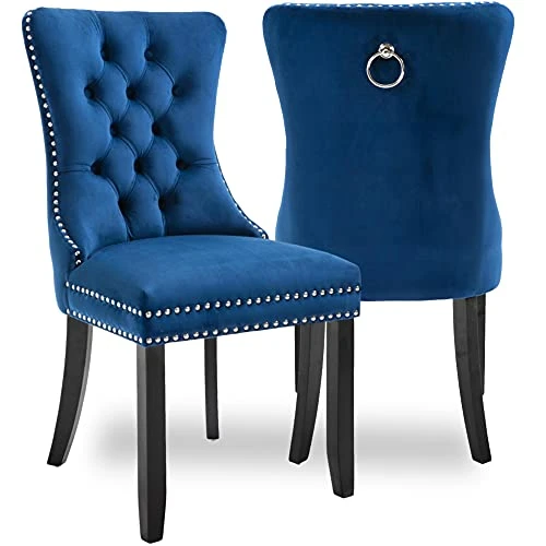 - 『Perfectly Matching Dining Table』Beautiful color velvet and solid wood legs match perfectly with a large range of dining tables. The pulling ring at the back makes it very easy to move on the floor. They look great and feel great!