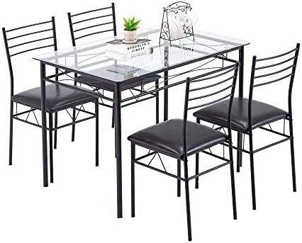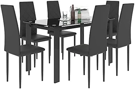 - 🌺【Durable Structure】This rectangle tempered glass dining table adopts high quality tempered glass, which is sturdy and durable. The legs Iron tube frame with spray painting process, sturdy and durable in use. The dining table set offers large weight capacity to meet your daily needs