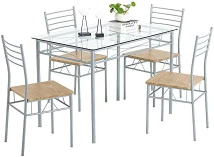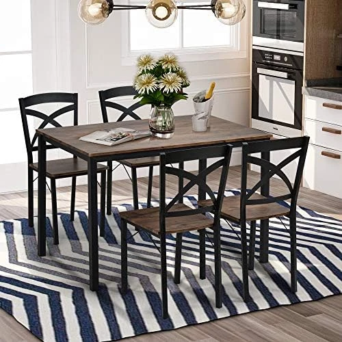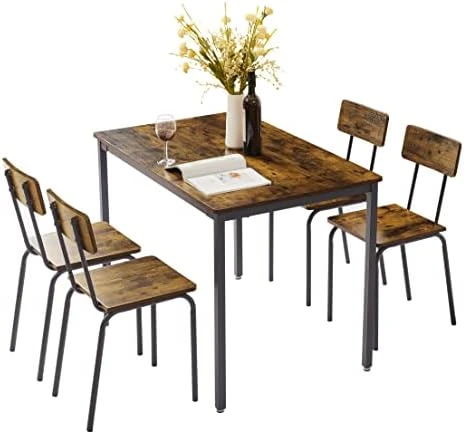 - 🌺【Easy To Storage and Keep Tidy】Tuck the 4 chairs in for a compact design that makes this set an ideal choice for the dining area of small living spaces.Come with all accessories and instructions,it won’t take you much time to install and could save your energy.The spacious and versatile smooth tabletop is easy to clean