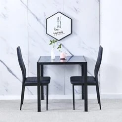 AT-VALY 5-Piece Bar Table Set With 4 Stools,Dining Room Table Set,Small Spaces (Gold & White)
