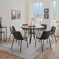 Kings Brand Furniture – Elmer 7 Piece Glass Top Dining Set, Table & 6 Chairs, Gray