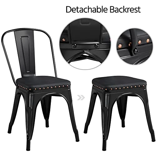 - Removable backrest: If you do not need the backrests, you can remove them, and the dining chairs will become simple bar stools, which also makes the stools stackable, saving space and easy to organize.